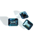 A calibrated selection of octagonal faceted London blue topaz gemstones gemstones, all possessing almost oceanic deep green-blue colouring throughout. Perfect for use in bespoke designs and fine jewellery.