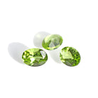 A calibrated selection of oval faceted peridot gemstones, all displaying bright and playful hues of warm, yellowish grass-green. Perfect for use in bespoke designs and fine jewellery.