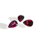 A calibrated selection of pear faceted rhodalite garnet gemstones, all displaying shades of deep and vivid purple-reds and magentas. Perfect for use in bespoke designs and fine jewellery.