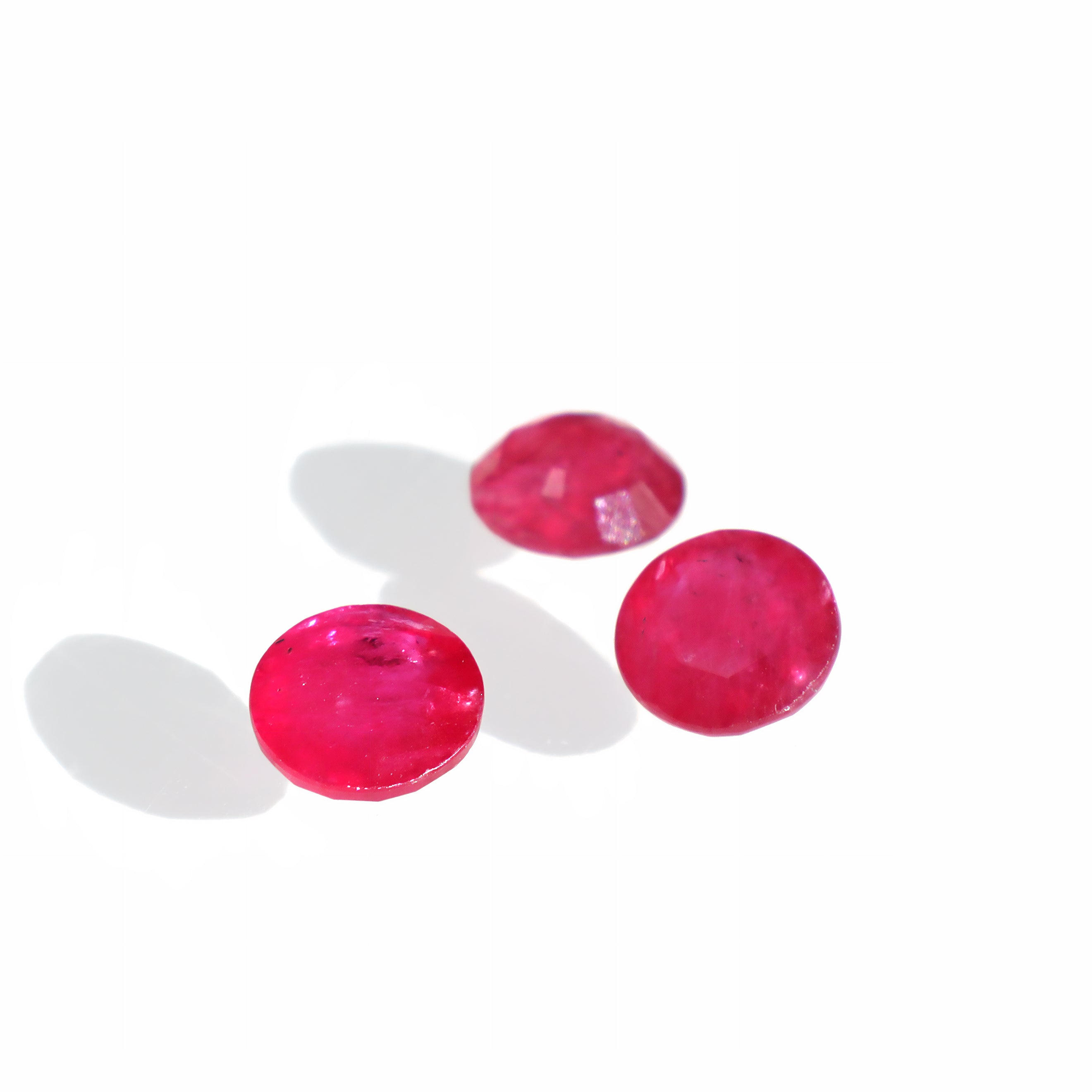 A calibrated selection of round faceted commercial-quality ruby gemstones. Perfect for use in bespoke designs and fine jewellery.