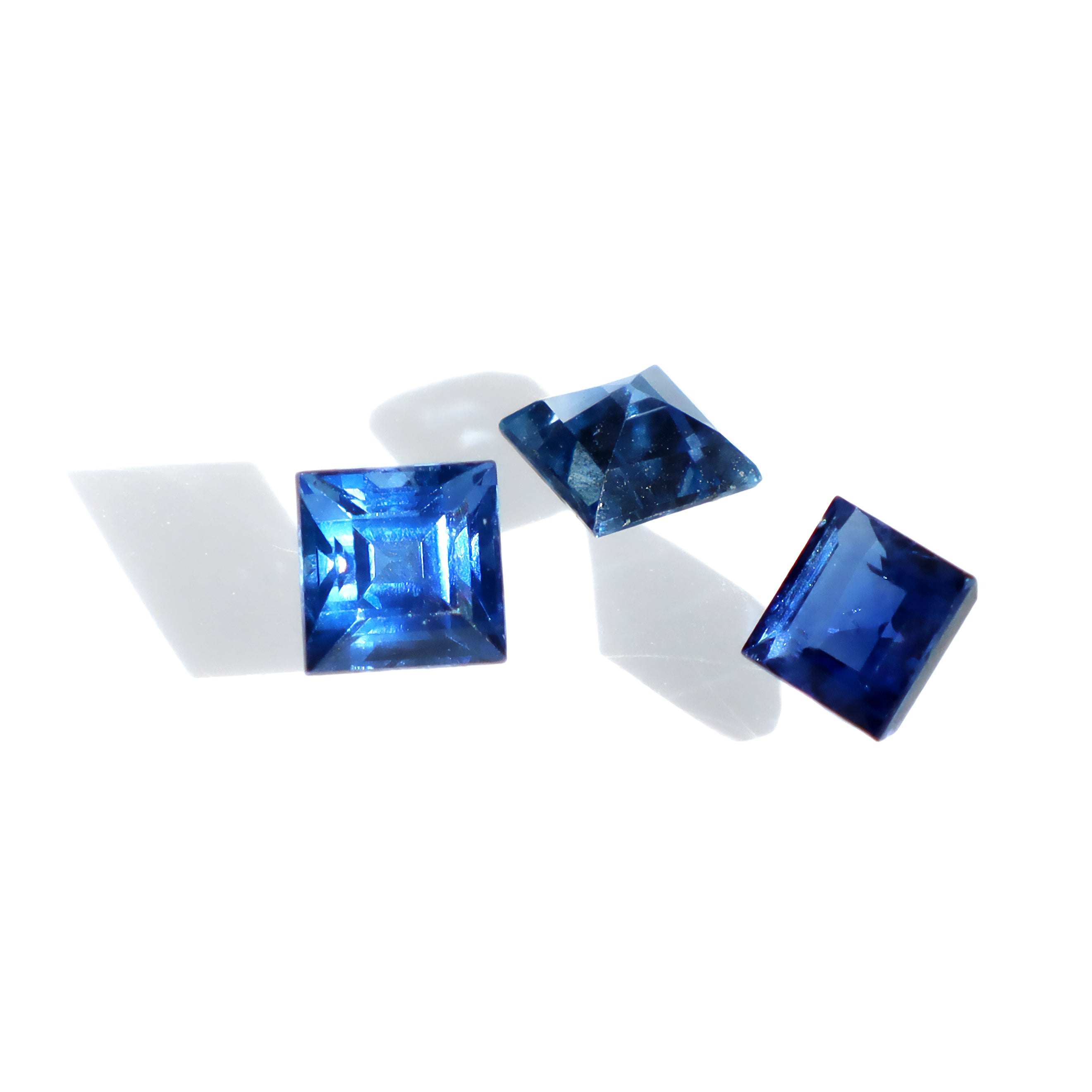 A calibrated selection of square faceted commercial-quality blue sapphire jewels. Perfect for use in bespoke designs and fine jewellery.