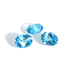 A calibrated selection of oval faceted Swiss blue topaz gemstones, all possessing vibrant bright blue colouring. Perfect for use in bespoke designs and fine jewellery.