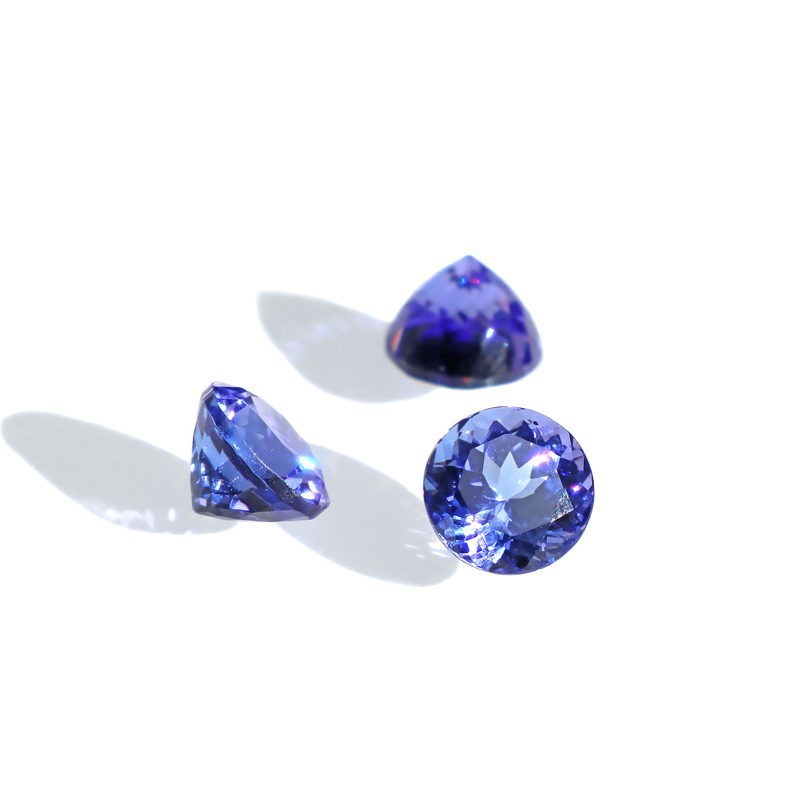 A calibrated selection of round faceted natural tanzanite gemstones, sourced directly from the mountains of Tanzania. Perfect for use in bespoke designs and fine jewellery.