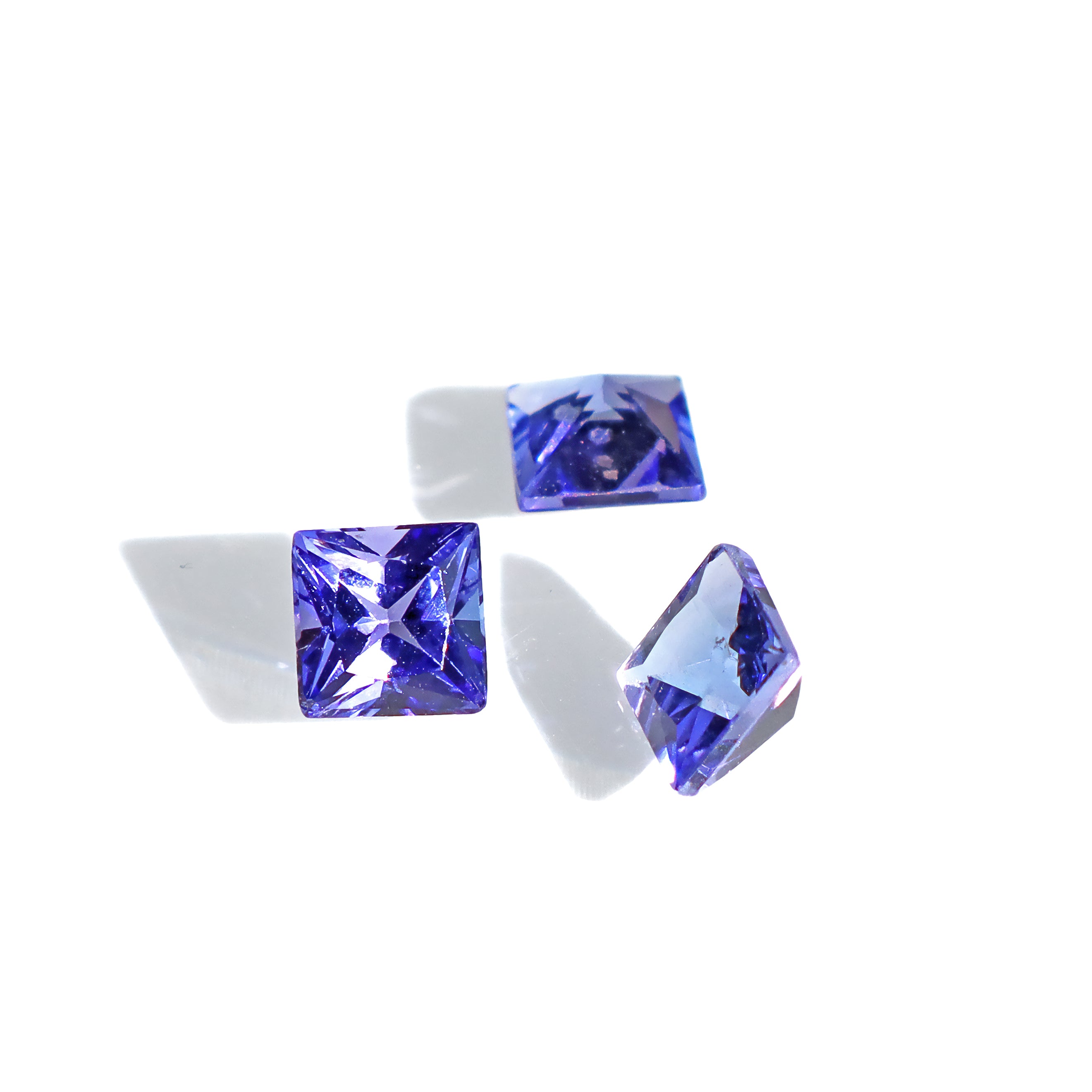 A calibrated selection of square faceted natural tanzanite gemstones, sourced directly from the mountains of Tanzania. Perfect for use in bespoke designs and fine jewellery.