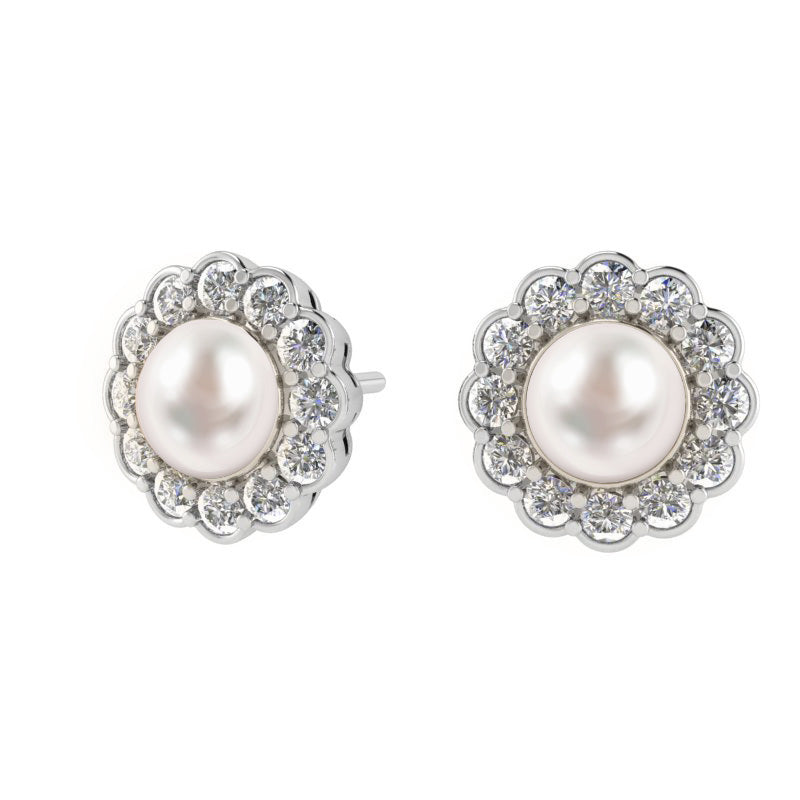 6mm Pearl Studs with Halo