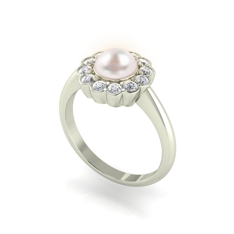 7.5mm Pearl Round Pendant with 3mm Round Halo